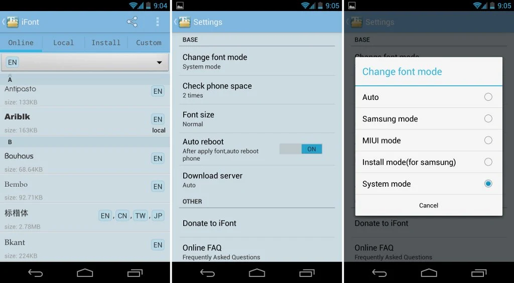 الطريقة الأولى : و ننتقل إلى أصحاب الروت و نبدأ بالتطبيق الأكثر شهرة ألى وهو تطبيق Font Installer الذي يشبه Ifont كثيرا في فكرته ، أما بالنسبة لطريقة التثبيت فيجب أن تركز معي جيدا ، أولا